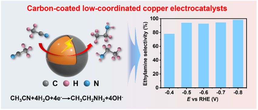 379.Electroreduction of acetonitrile to ethylamine by thin carbon coated copper catalysts