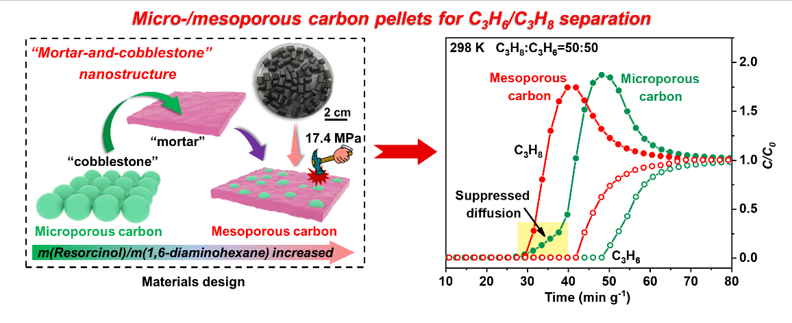 296. “Mortar-and-cobblestone” type carbon pellets with interlinked C3H6-philic domains
