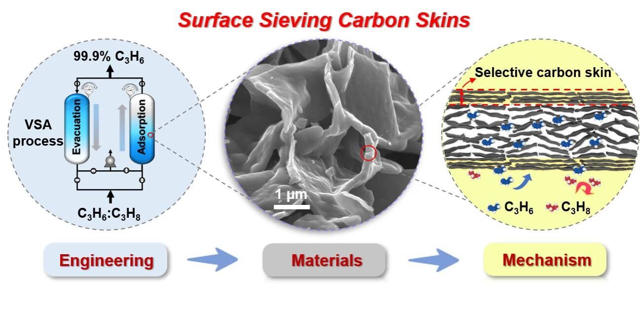 340. Surface sieving carbon skins for propylene and propane selective separation
